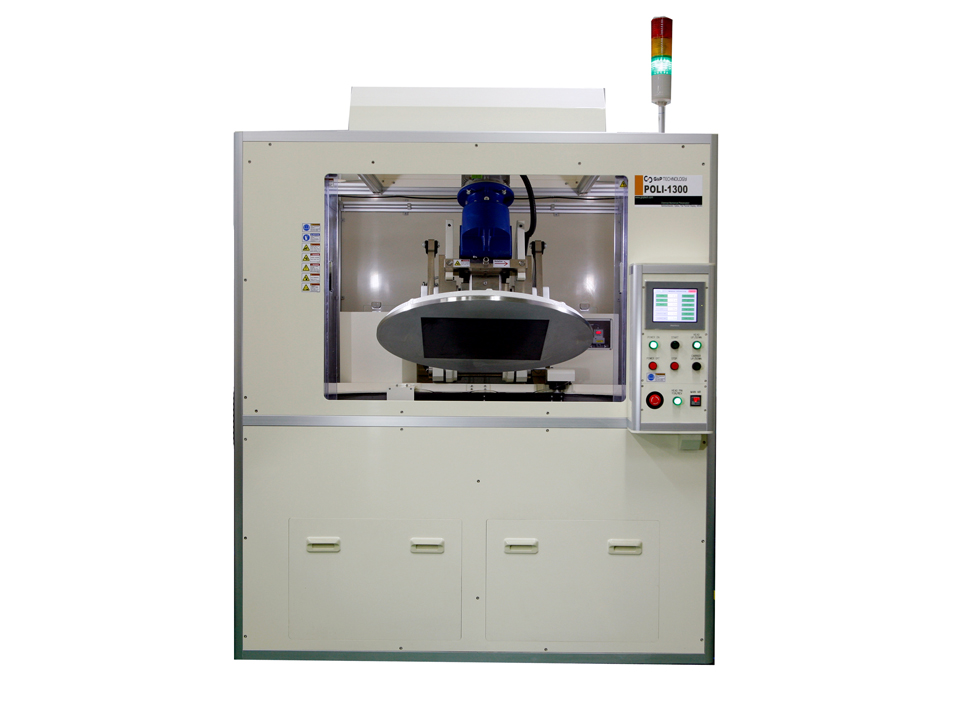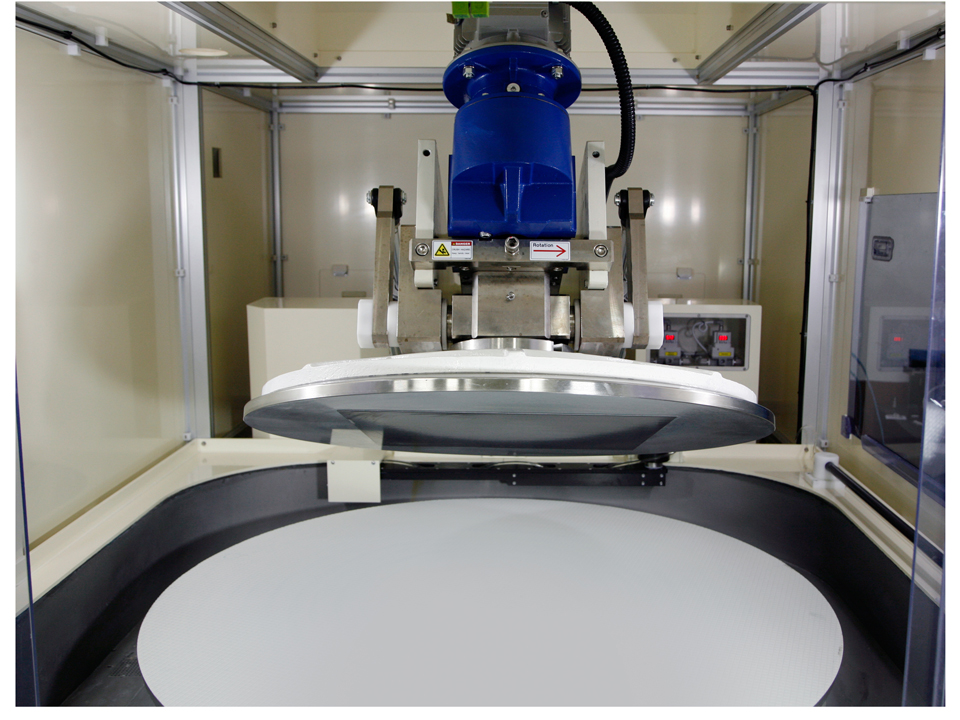The G & P Technology POLI-1300PCB planarization tool is specifically designed for use in processing large-format multilayer panels. The G&P POLI-1300PCB uses a large format carrier designed for use with rectangular substrates up to 530 mm on a side. The rigid design of both the direct drive carrier and tool, coupled with efficient through-the-table slurry delivery, provides for efficient planarization with exceptional process uniformity and substrate-to-substrate repeatability. Using process hardware similar to that used in semiconductor CMP processing, the carrier assembly with the substrate backing film is easy to load and securely holds the substrate in place for polishing.