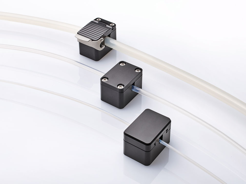 - Fitting for a wide range of plastic tubing types, e.g., PVC, PE, silicone, PUR (no limitations due to the use of opaque tubings)