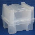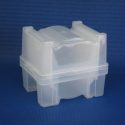 This shipping and storage box holds up to 25 wafers with 200 mm size. Individual horizontal springs hold the wafer securely in the box during shipping and storage.